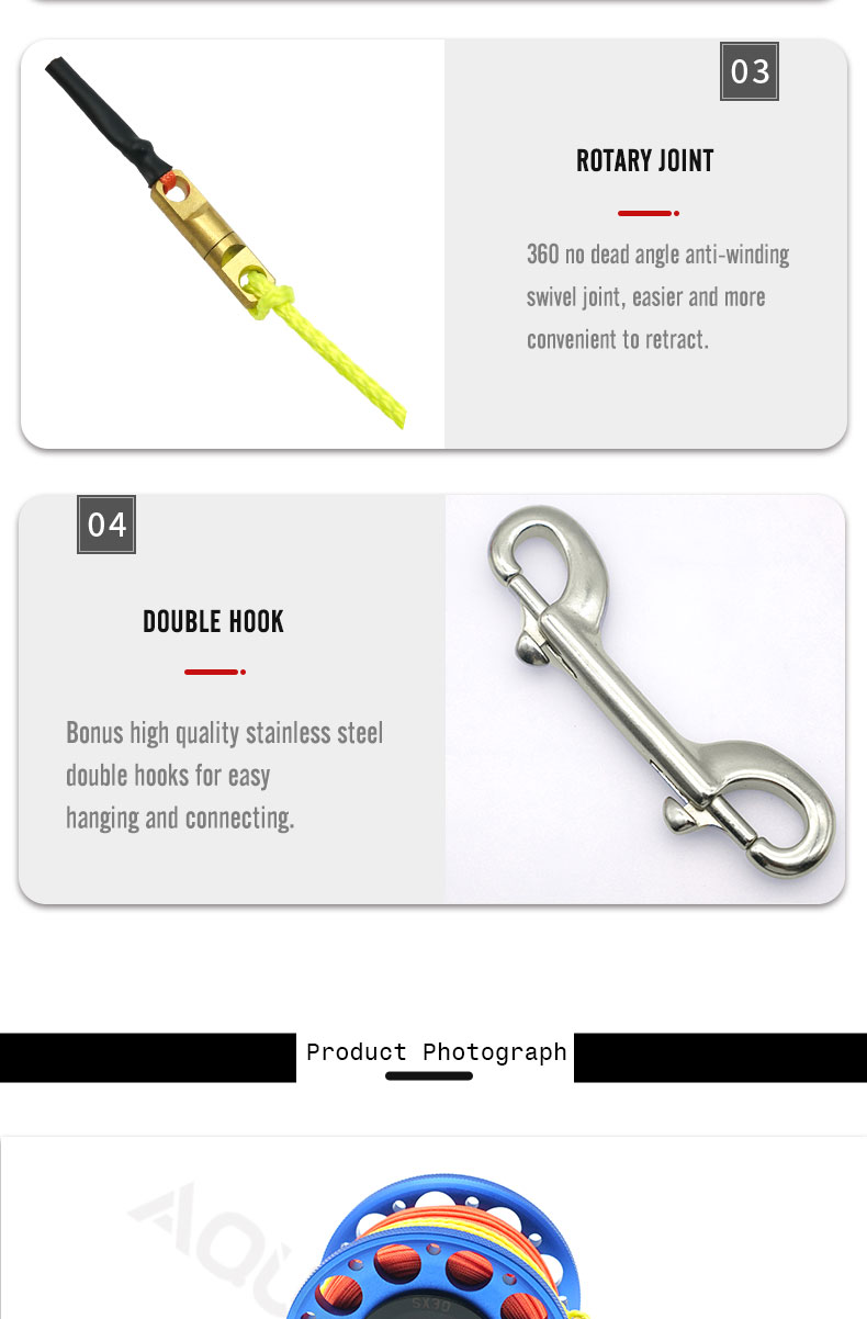 Crafted from premium corrosion-resistant materials, this diving reel thrives in both freshwater and saltwater. Its 360° rotating large center axle enables tangle-free, smooth line unwinding/rewinding for hassle-free dives. The 98ft bright line boosts underwater visibility, enhancing safety. Versatile by design, it works as a safety dive marker or pairs with a dive float flag. Durable and reliable, it’s a must-have for professionals and enthusiasts alike.