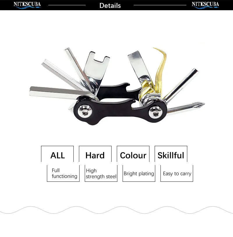 316 stainless steel material resists seawater corrosion, has multi-functionality, and features a foldable design that is compact, reducing the weight of the equipment carried during diving.