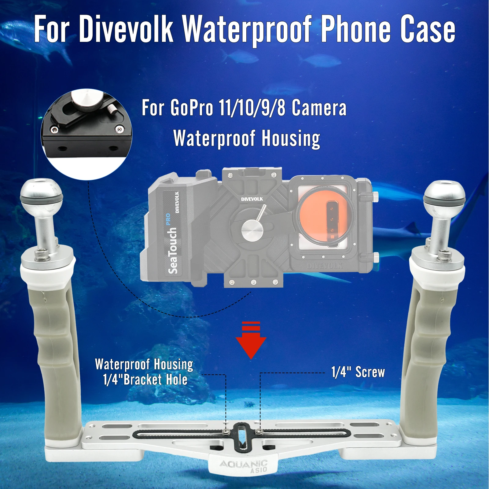 📸 Aquanic AS10 Extendable Dual Handle Tray | Underwater Camera Stabilizer