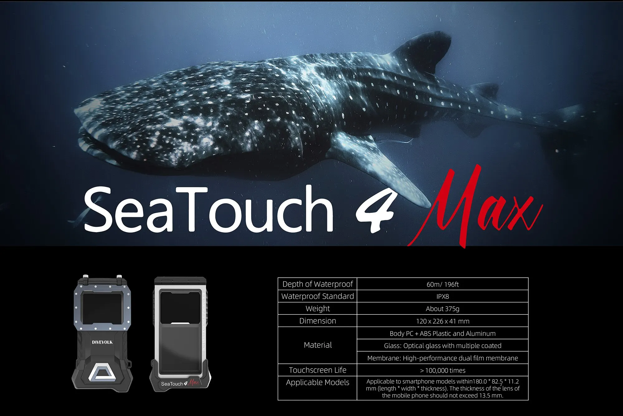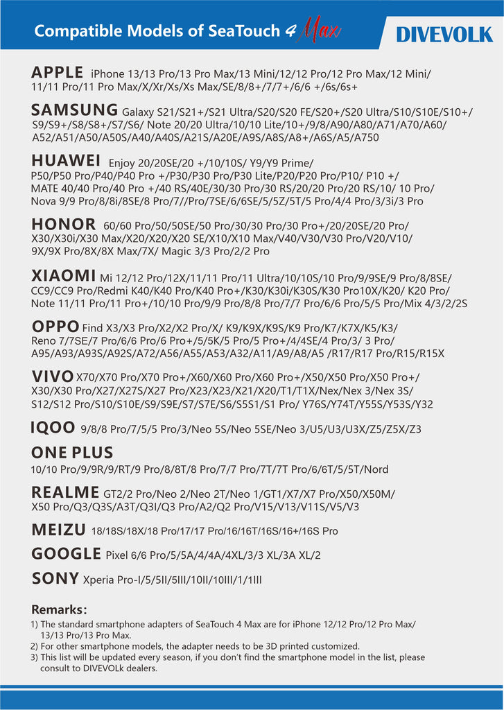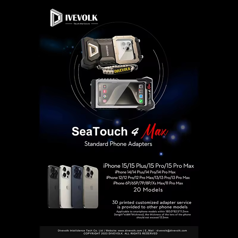 DIVEVOLK Seatouch 4 Max Waterproof Phone Housing is available for iphone and most Android devices.It supports custom adapters to use