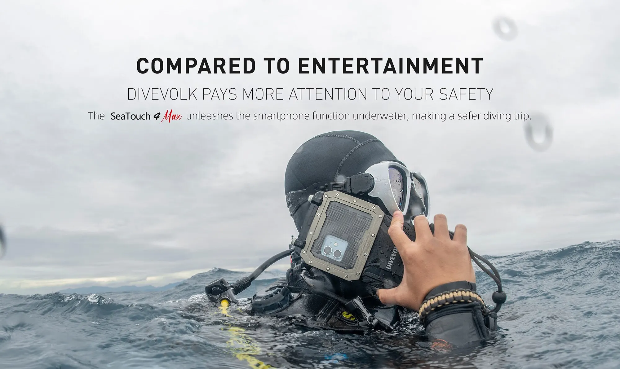 DIVEVOLK Waterproof Case 📱💦 | 60m deep waterproof, double-lock sealed for seawater resistance. Patented full-touch tech for smooth 40m underwater use. Fits iPhone/Huawei/Xiaomi & more. High-transparency glass + external lens compatibility for pro underwater shots.