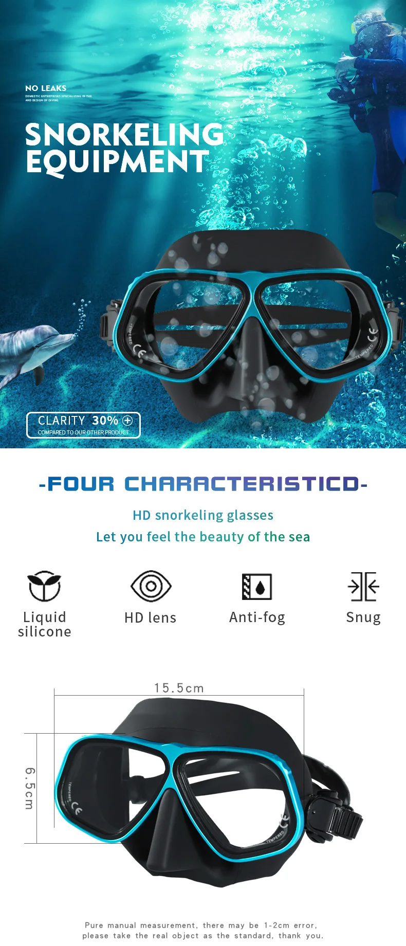 The soft silicone material ensures comfort and stability. It can be replaced with progressive lenses for clear vision. It offers a personalized and easy-to-use diving experience, with anti-slip straps allowing for personalized adjustment to ensure diving safety. The adjustable contour design is suitable for various face shapes and is highly suitable for diving and snorkeling.