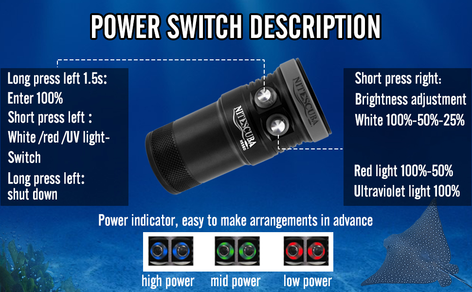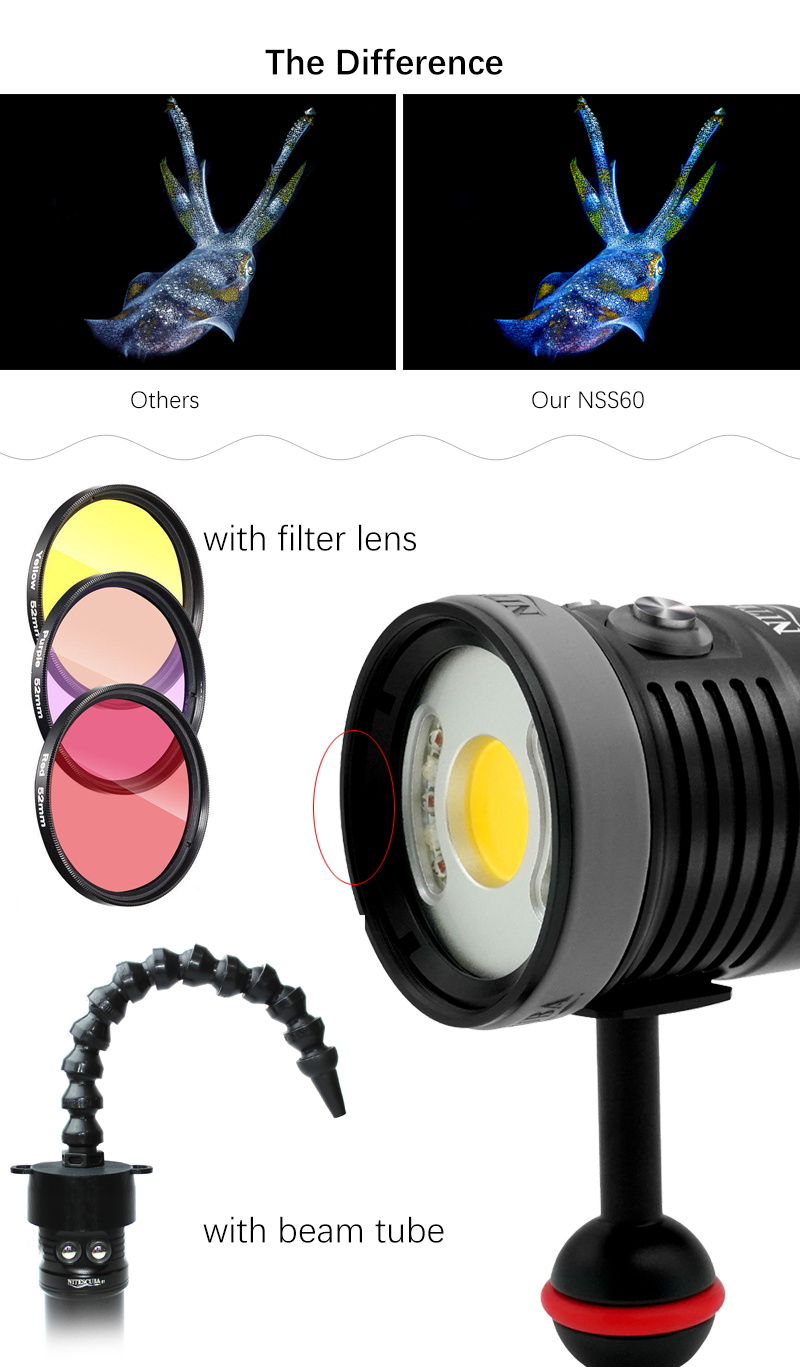 NSS60 Diving flashlight with 6000lumen and red - violet light is ideal for underwater filling shooting