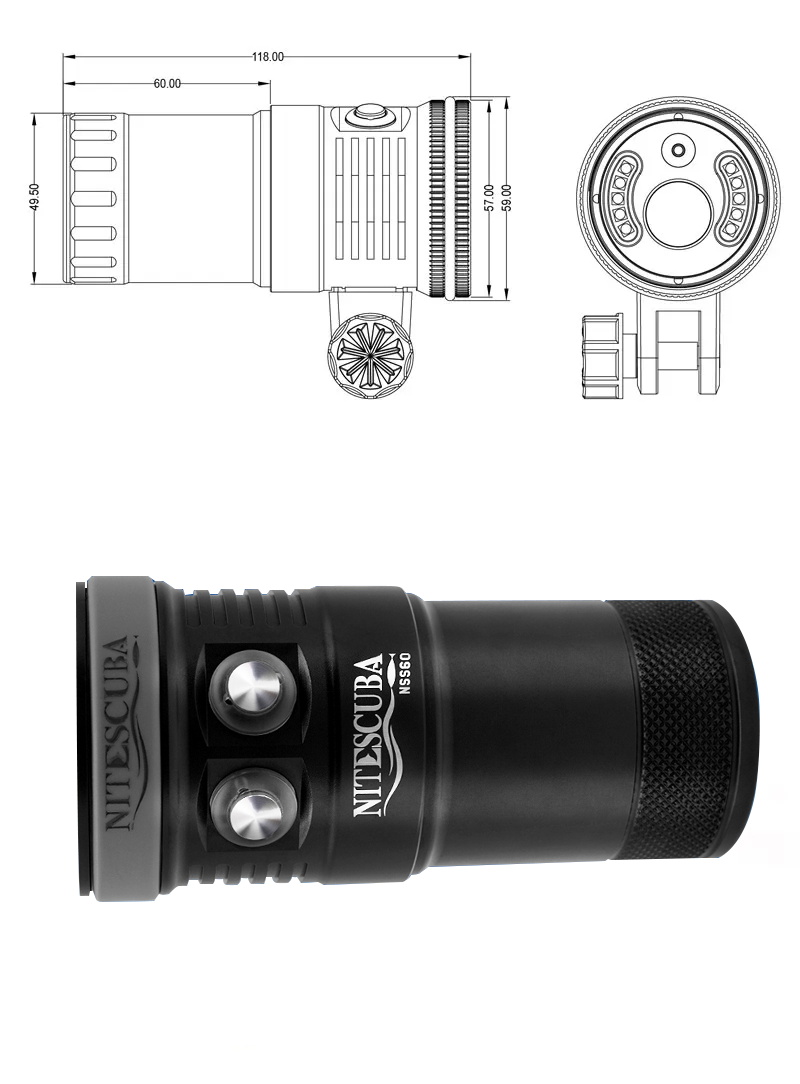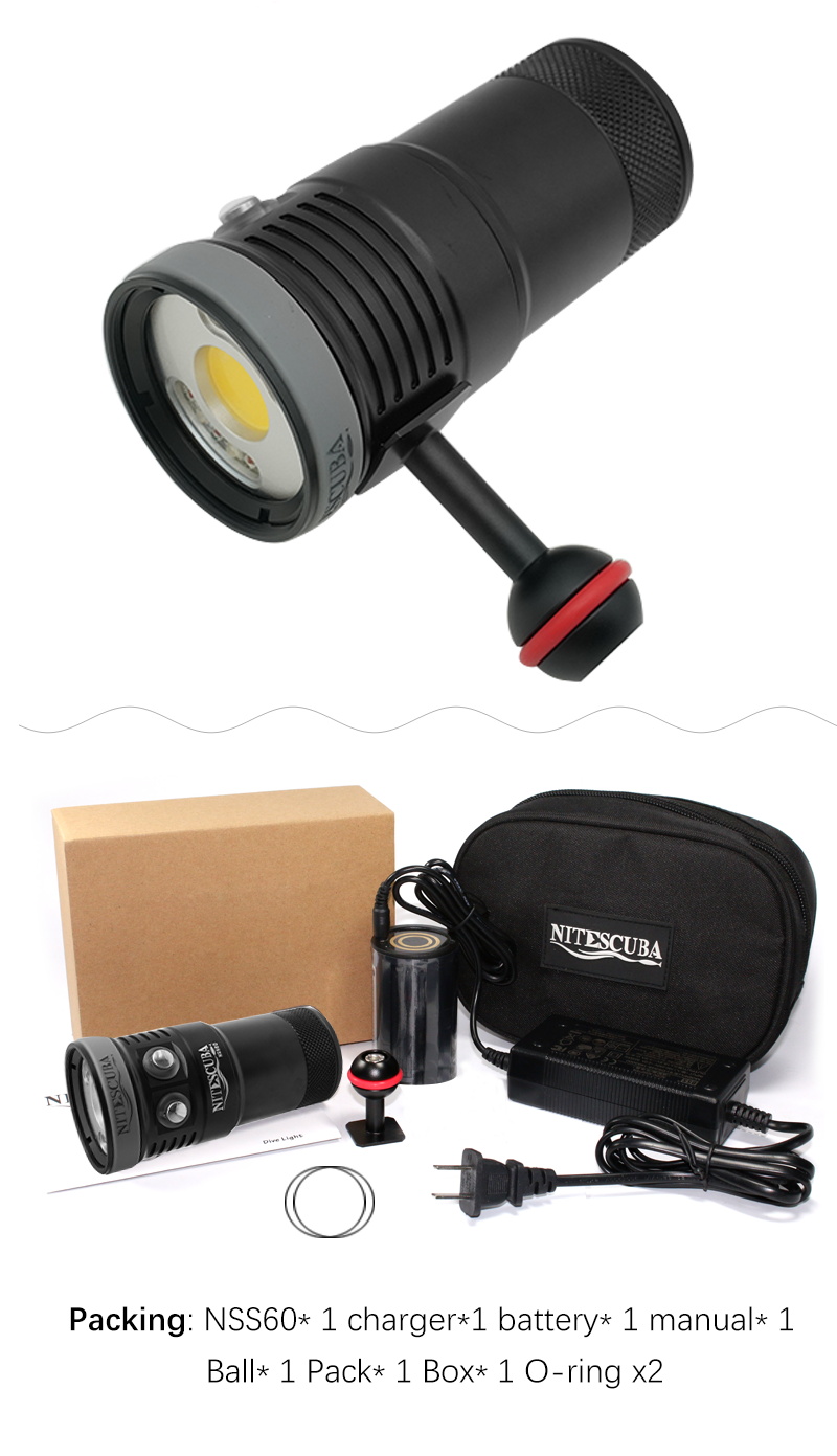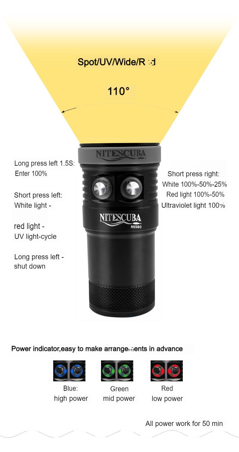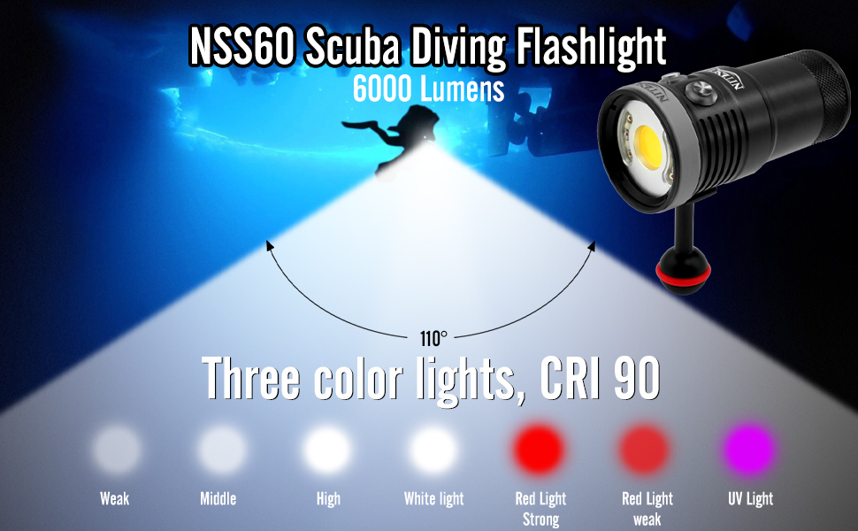 Nitescuba NSS60 Multi-color Diving flashlight IPX8 Waterproof rating 6000lumen CRI 90