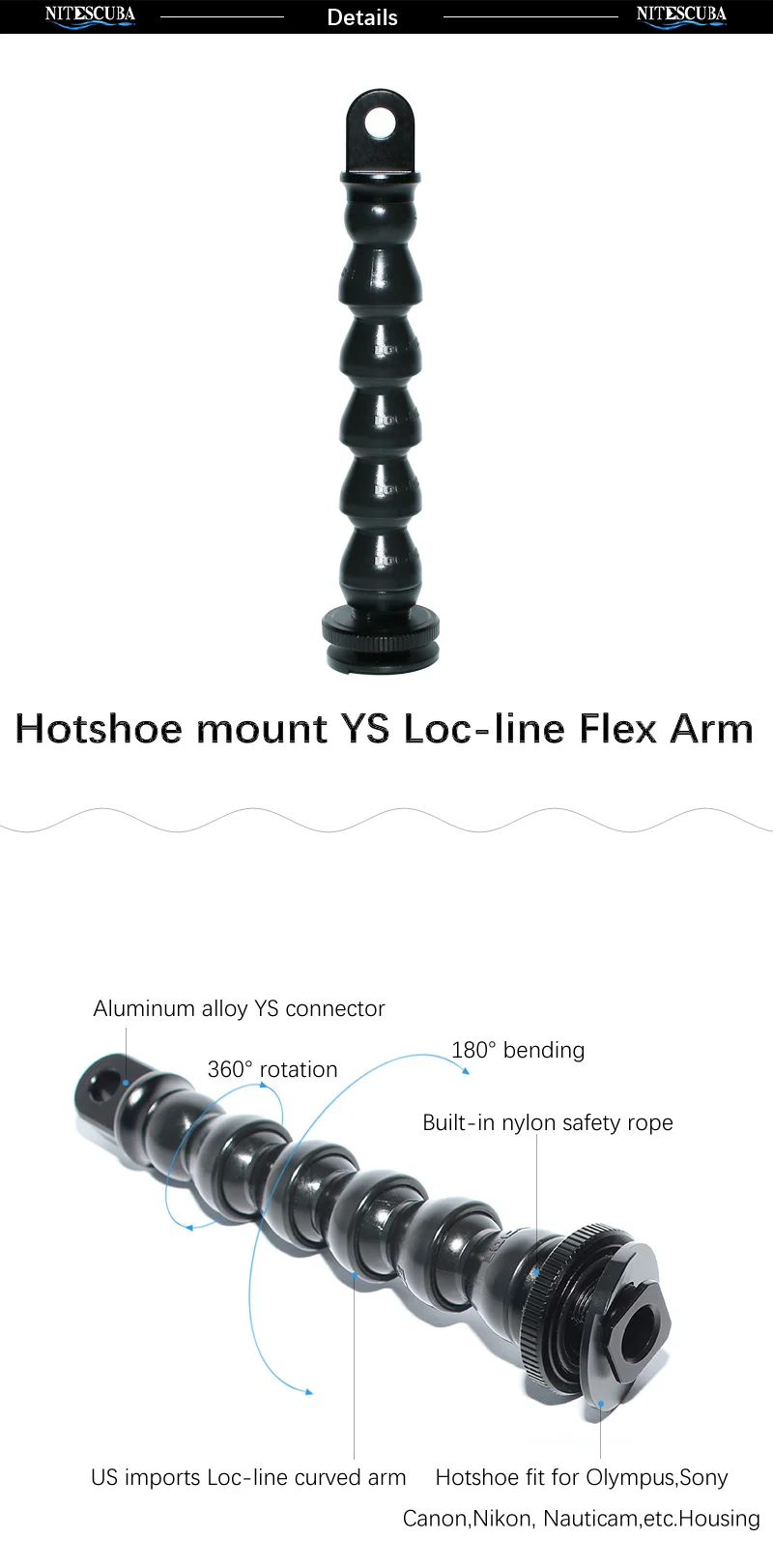Nitescuba SA06S 6-inch YS heat shoe snake arm Interface, Elastic Lamp, Shoulder, Ys Adapter Flash Lamp, Tg6 5, Underwater Photography.