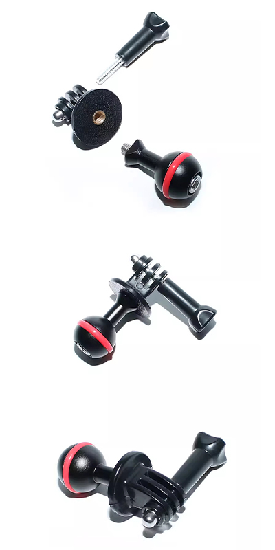 This Gopro adapter ball head is treated with hard anodizing on the surface. The ball head is a standard 1-inch with a diameter of 2.45cm. It is used for connecting the action camera and the lamp arm system.