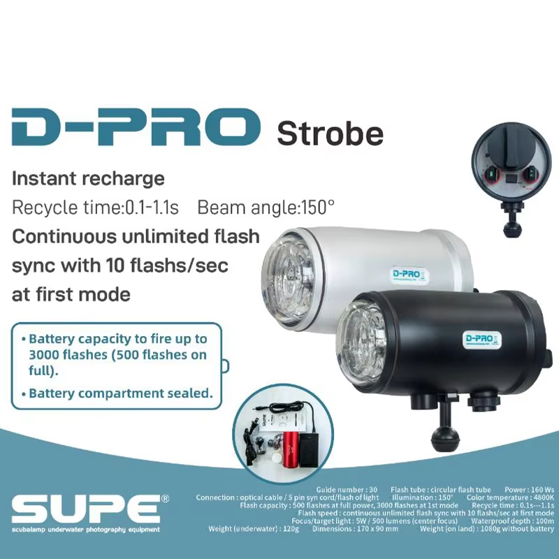 scubalamp SUPE D-Pro podwodne światło stroboskopowe GN 32 maksymalne wyjście: 250 watów