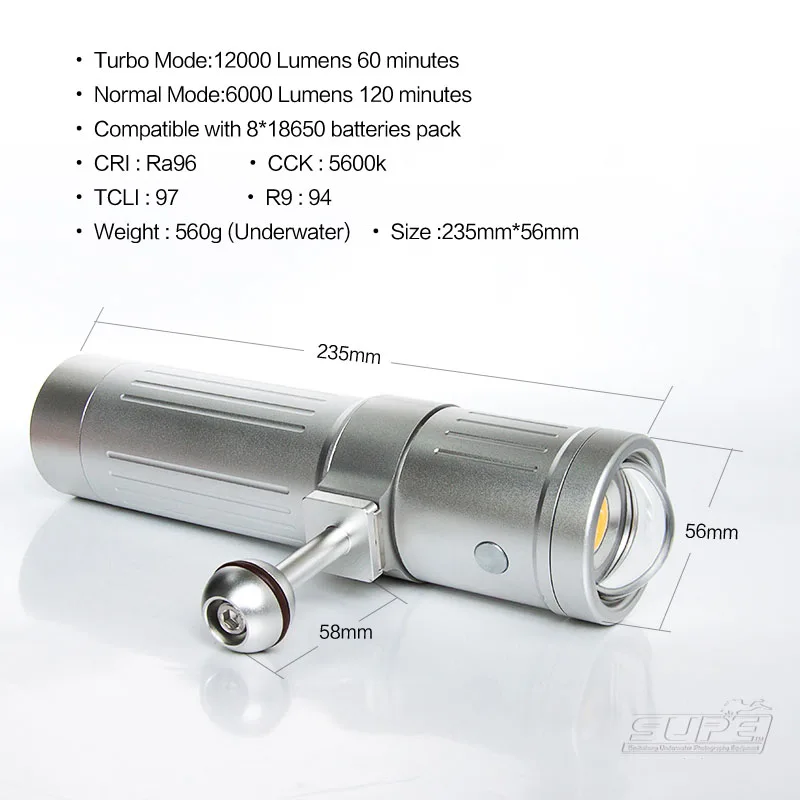 Scubalamp/Supe V6KPro Video/ Photo Light 12000 Lumen 120 degree beam