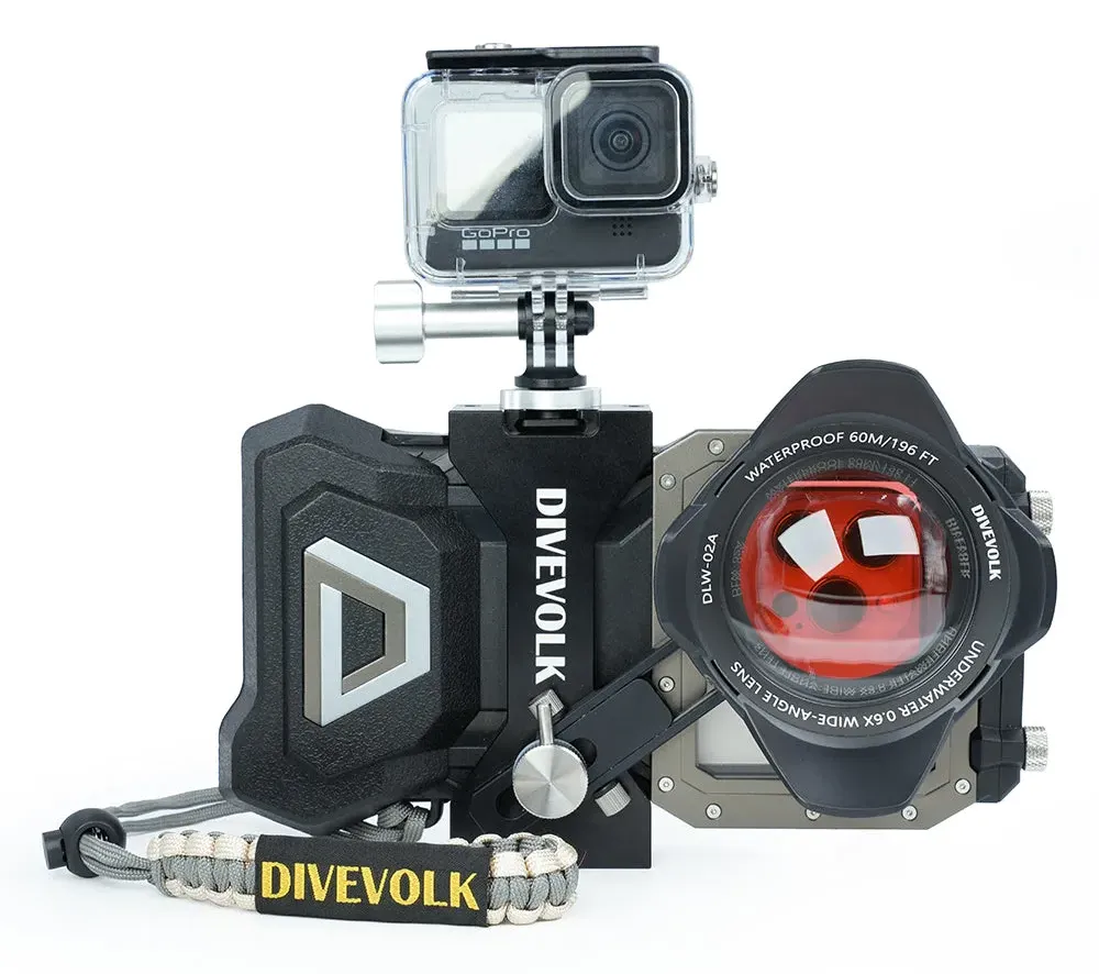 The expansion jig can be linked to a GoPro camera, Its 67mm threaded interface can be used to install color filters and divevolk lenses